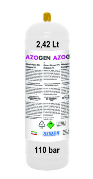 2,42L Azogen Einwegflasche (N2/H2) 110 Bar | M10x1 Anschluss